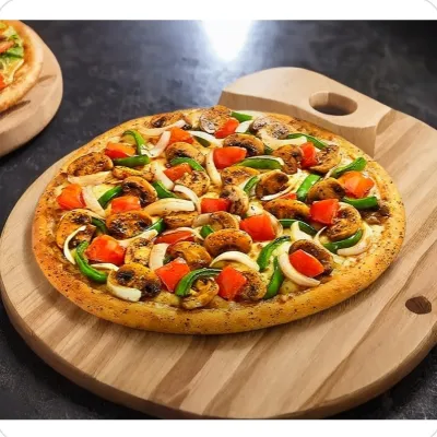 A rustic pizza bursting with the vibrant flavors of locally sourced, farm-fresh ingredients, from seasonal vegetables to artisanal cheeses, showcasing the best of the countryside on a crispy crust.